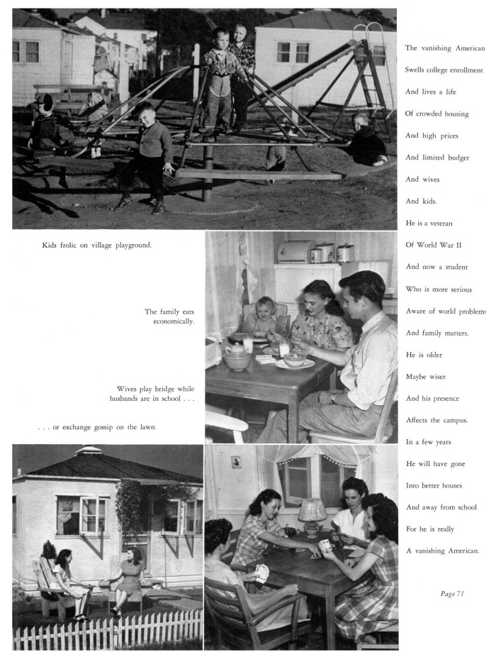The 1948 Yucca had a two page spread that showed images of life at Vet Village.